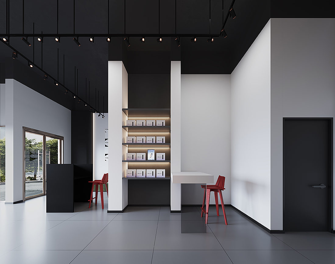 小型商鋪裝修效果追求精致與實用并存??臻g雖有限,但通過巧妙布局與色彩搭配,營造出寬敞明亮的購物環(huán)境。整體顏色使用白色和黑色相互混搭。墻面與地面選用耐磨易清潔材料,保持店鋪整潔。商品展示區(qū)設(shè)計醒目,利用燈光與陳列技巧吸引顧客目光。整體裝修風(fēng)格與商品定位相符,營造出舒適愉悅的購物氛圍,提升顧客體驗與店鋪形象。